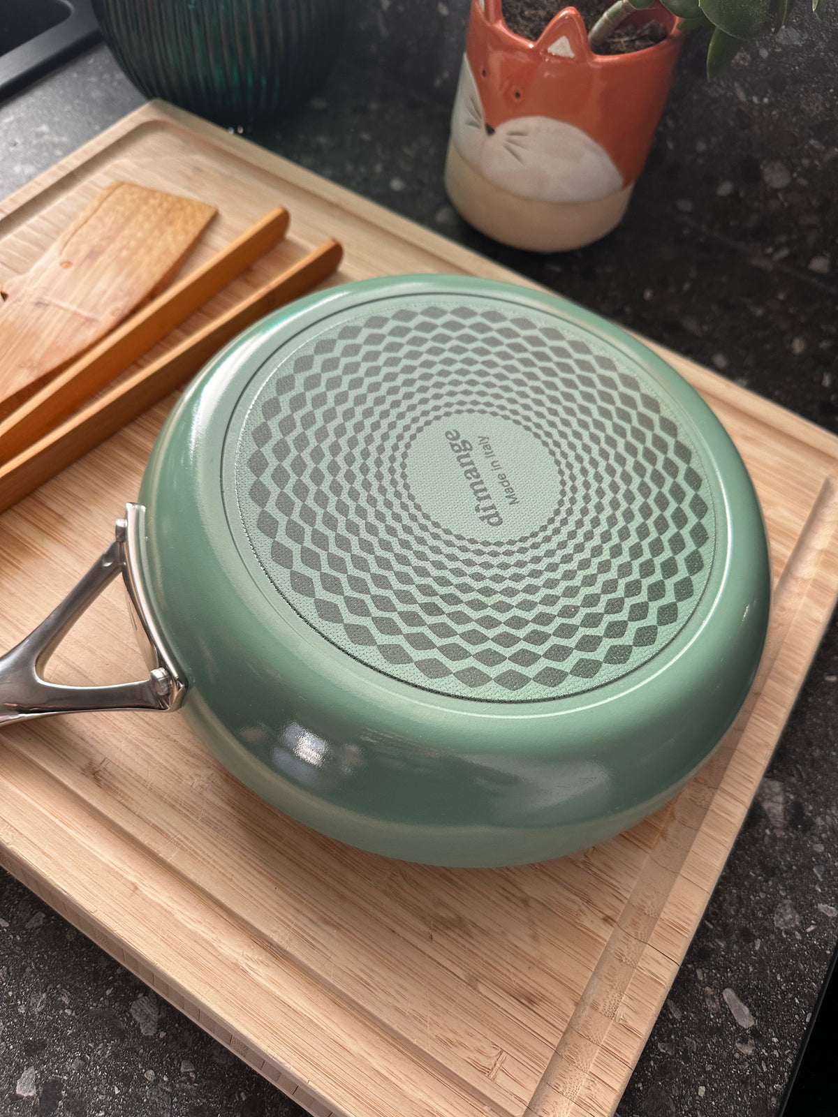 | Caracteristică | Teflon | Fontă tradițională | Ceramică obișnuită | Di'MangeNo. 1 | The Di'mange pan |